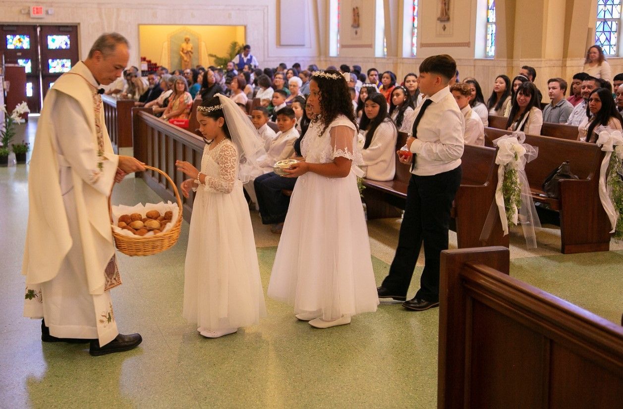 At St. Joseph Catholic Church, children typically prepare for First Holy Communion in 2nd grade or above.